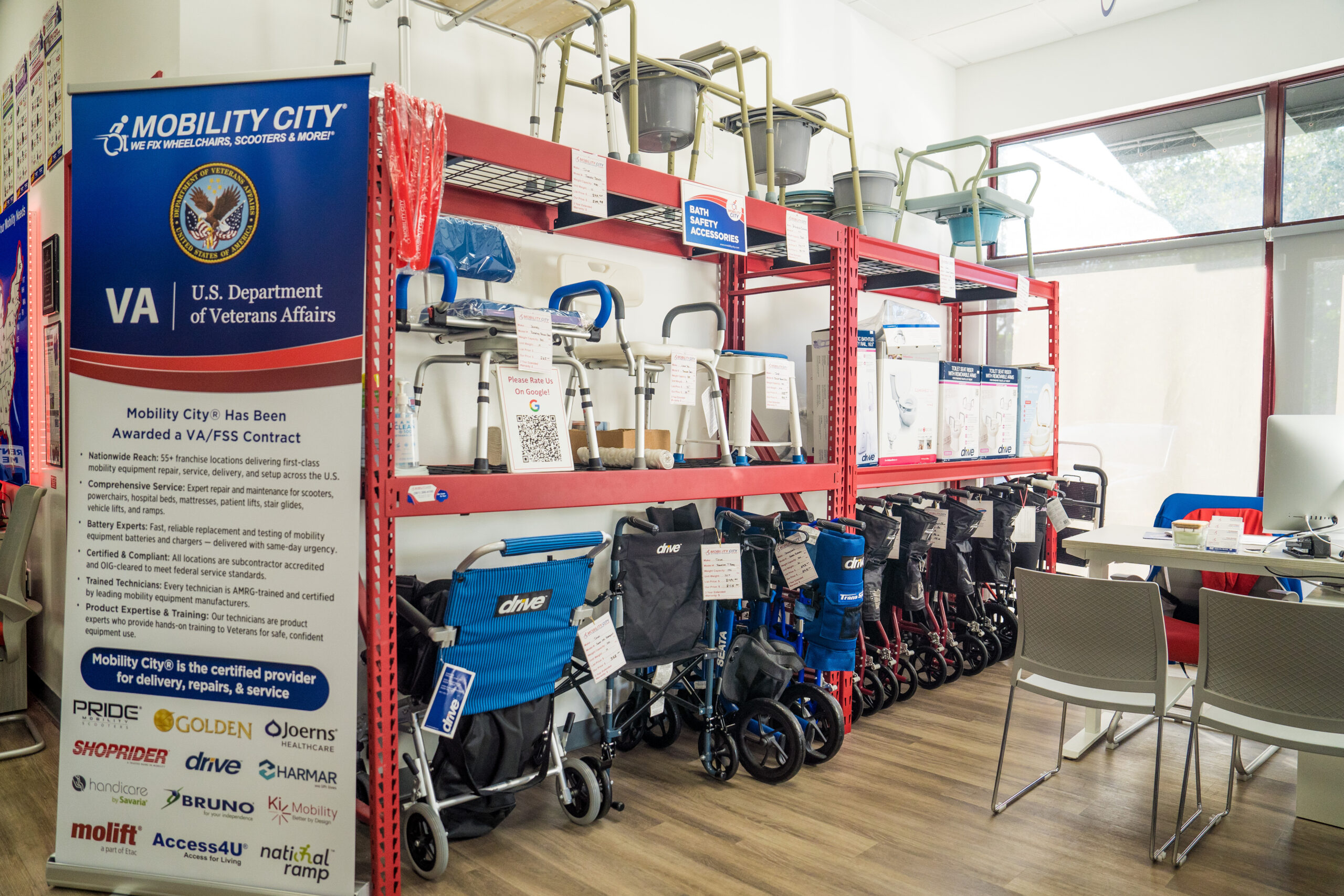 We understand that mobility is more than mobility equipment—it’s about independence, confidence, and quality of life. At Mobility City, our mission is to support every stage of your mobility journey with expert guidance, compassionate service, and accessible solutions tailored to your needs. Whether you’re seeking reliable repairs, flexible rentals, or new mobility equipment, we are here to provide trusted support backed by certified technicians, knowledgeable staff, and a nationwide network of locally owned and operated locations. We also proudly partner with the VA to ensure Veterans receive the mobility solutions and care they deserve.