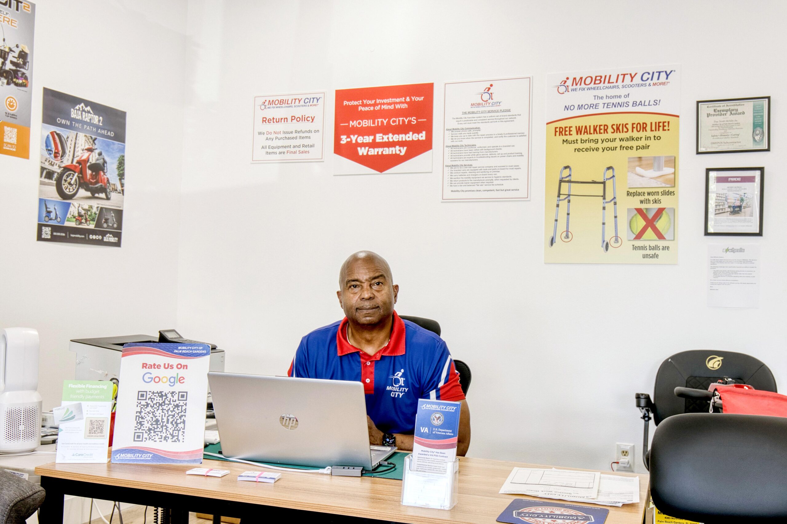 We understand that mobility is more than equipment—it’s independence, confidence, and quality of life. At Mobility City, our mission is to support every stage of your mobility journey with expert guidance, compassionate service, and accessible solutions tailored to your needs. Whether you’re seeking reliable repairs, flexible rentals, or new mobility equipment, we’re here with trusted support backed by certified technicians, knowledgeable staff, and a nationwide network of locally owned and operated locations. We proudly partner with the VA to ensure Veterans receive the mobility solutions and care they deserve.